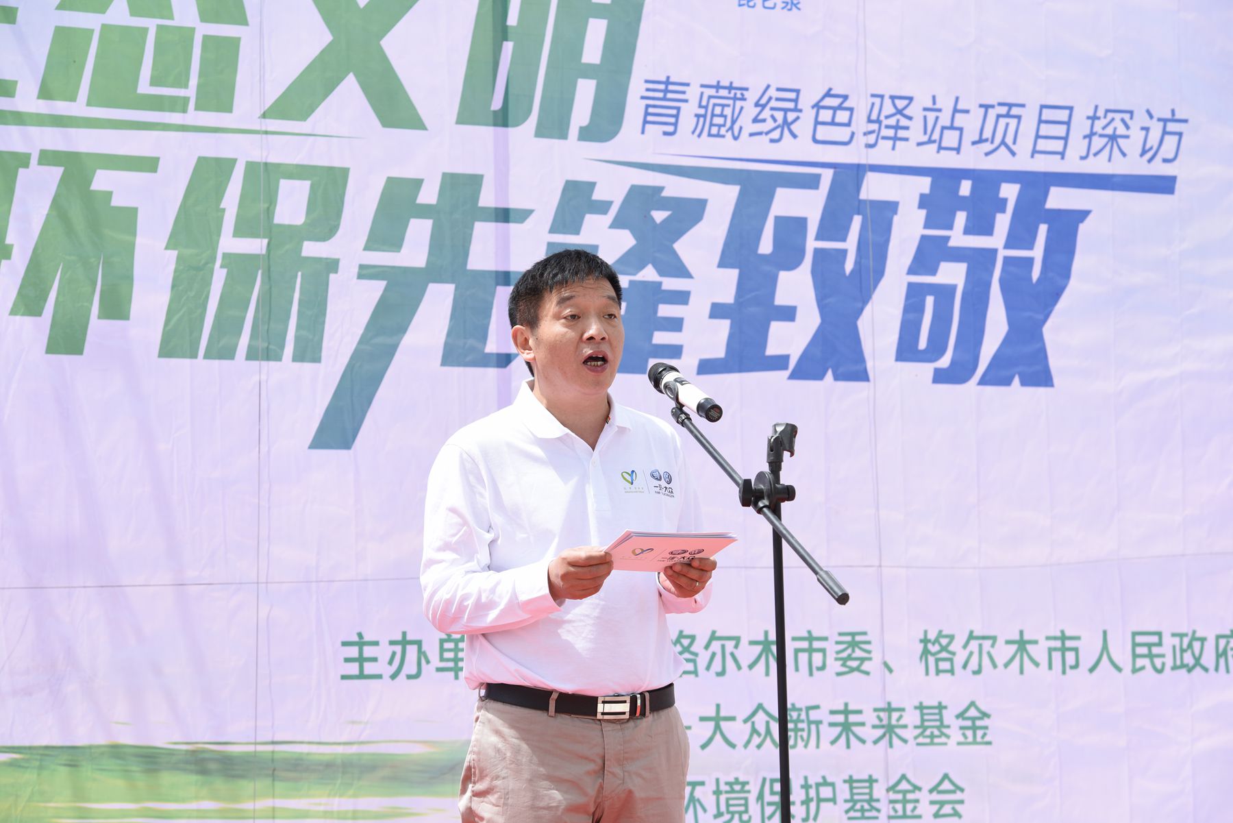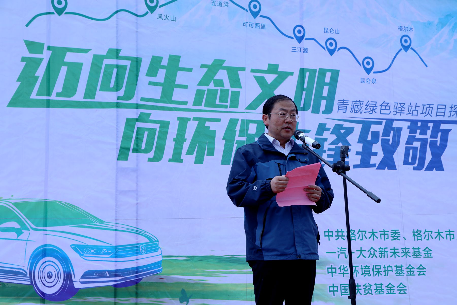 青藏绿色驿站项目得到青海省海西州大力支持,此次活动,海西州政协副主席刘颜成先生宣读海西州政府发来的贺信。在贺信中提到“青藏高原是世界上海拔最高的独特的地理单元,也是我国和全球重要的生态屏障,生态环保工作显得尤为重要,‘青藏绿色驿站’将政府、企业各方面的力量凝聚一身,为青藏公路生态环保事业发展摸索出了一条新路,意义非凡。”